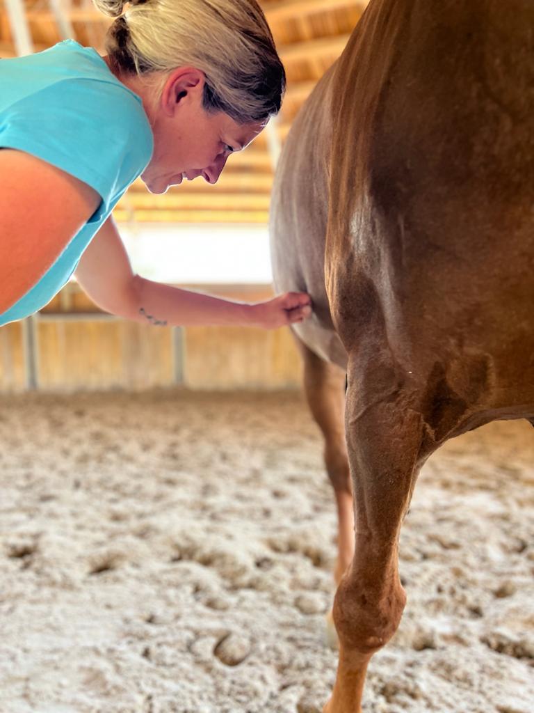 Ablauf: Ein geschlossener Longierzirkel ist als Behandlungsort sehr gut geeignet aber natürlich gehen auch Box, Stallgasse, Putzplatz, Halle/Reitplatz etc. – wichtig ist eine ruhige Atmosphäre / Tageszeit. Euer Pferd sollte nicht „hungrig“ sein / bereits etwas gefressen haben. Das Fell muss trocken und sauber sein – und ganz wichtig: bitte ein paar Tage vor dem Termin kein Mähnen-/Fellspray verwenden!